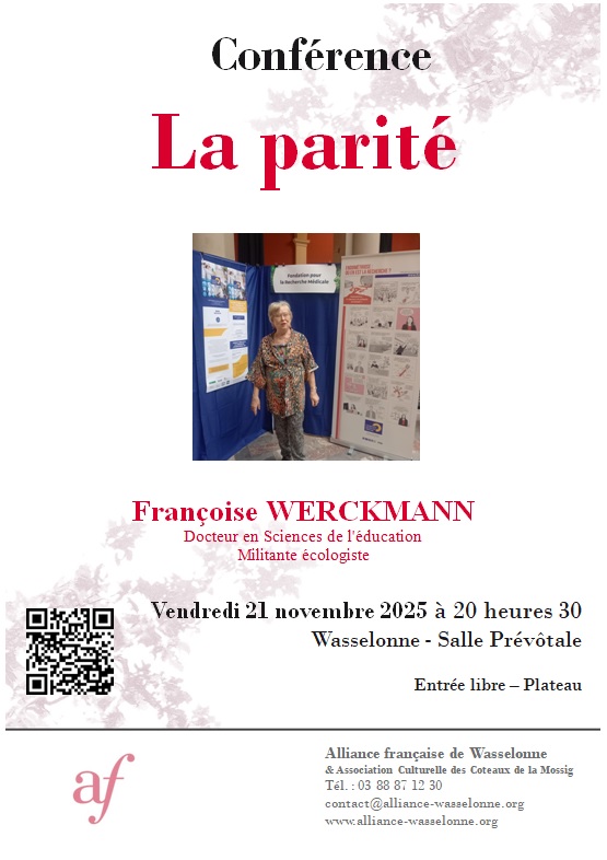 La parité est un thème important et d’actualité en ce qui concerne la promotion des femmes et les élections, l’éducation, la vie sociale et professionnelle. Vaste sujet qui sera abordé en le définissant puis en le parcourant tant du point de vue socio-politique que de celui de l’éducation. La conférencière ponctuera le sujet de quelques exemples d’actualité et de pistes d’action en se penchant notamment sur la question du droit des femmes en politique et dans la vie sociale.